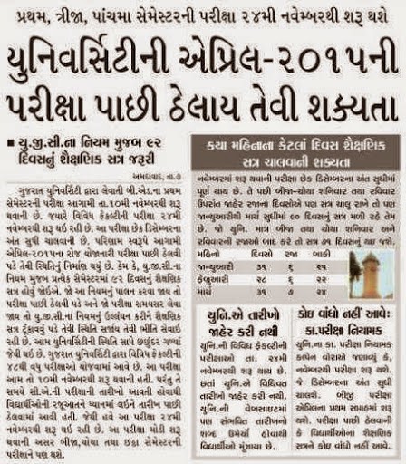 Gujarat University - April 2015 Examination Related News .....!