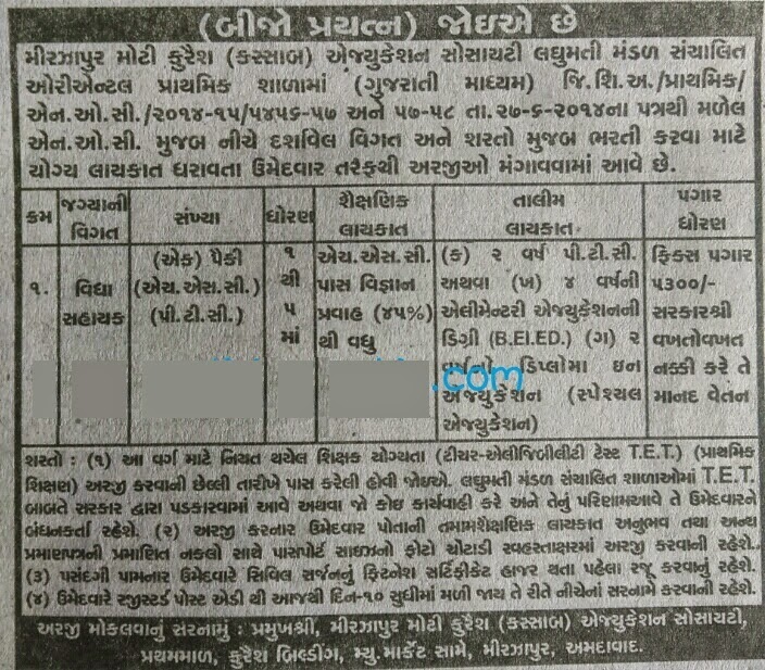 NEW REQUIREMENT OF STD-1-5 GRANTED SCHOOL MIRZAPUR MOTI KURAISHI(KASBA) .........!